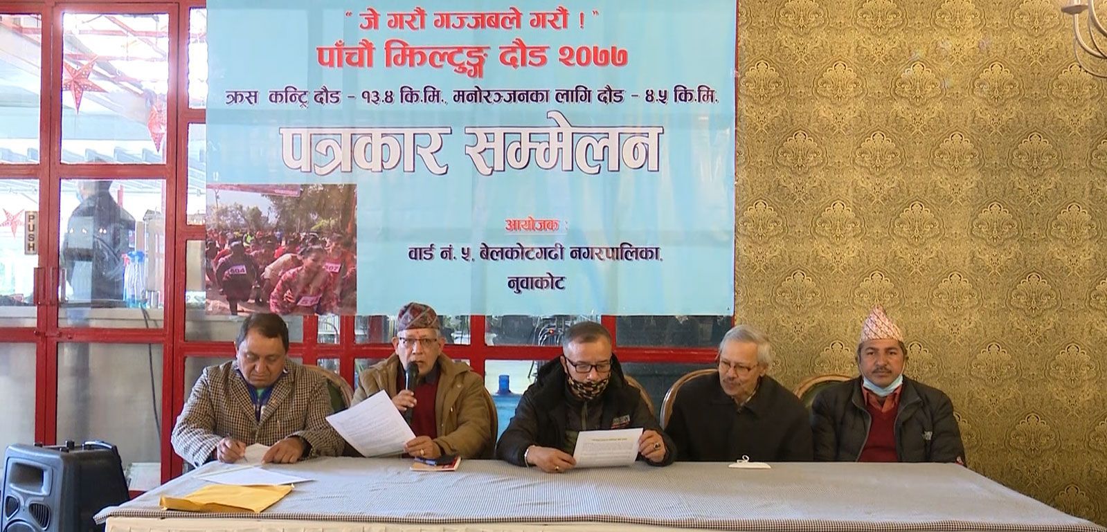 काठमाडौं । नुवाकोटमा झिल्टुङ्ग क्रसकन्ट्री दौडको पाँचौ संस्करण माघको दोस्रो साता आयोजना हुने भएको छ । नुवाकोटको बेलकोटगढी नगरपालिका वडा नम्बर ५ कोल्पुटारबाट शुरु भएर दौड बेलिनी, छाप, राजओडार, खड्गाछाप, सालचौर हुँदै पुन कोल्पुटारमा आएर समापन हुने छ ।