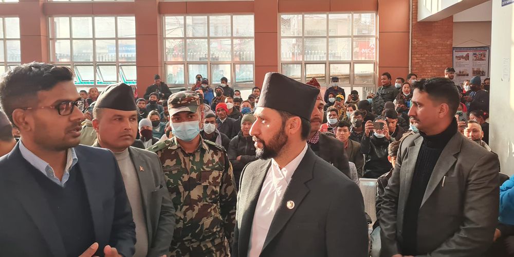 बुधबार दिउँसो त्रिपुरेश्वरस्थित राहदानी विभाग पुगेर गृहमन्त्री लामिछानेले त्यहाँको अवस्थाबारे जानकारी लिएको उहाँको सचिवालयले जनाएको छ ।
