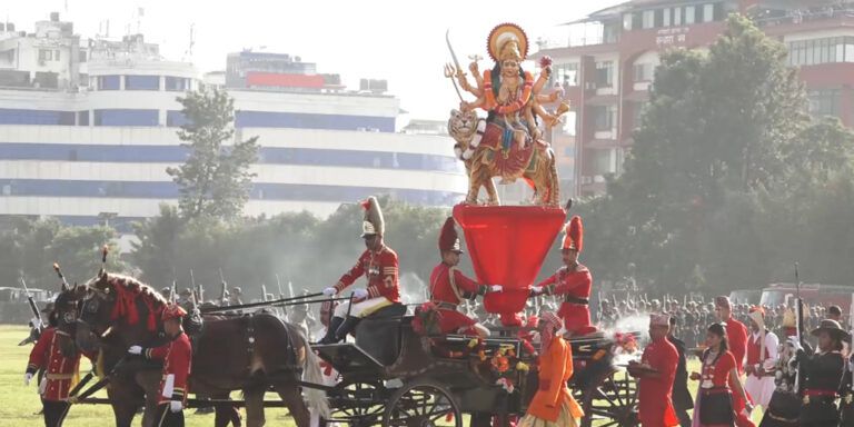 काठमाडौंस्थित टुँडिखेलमा नेपाली सेनाले फूलपातीको दिनको अवसरमा फूलपाती बढाइँ गरेको हो ।