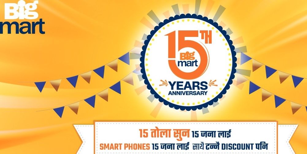 नेपालको खुद्रा बजारमा बिगमार्टले १५ वर्ष पार गरेको अवसरमा १५ जना भाग्यशाली ग्राहकहरूलाई १५ तोला सुन (प्रति व्यक्ती एक तोला) र १५ वटा स्मार्टफोन (प्रति व्यक्ती एक थान) प्रदान गरिनेछ ।
