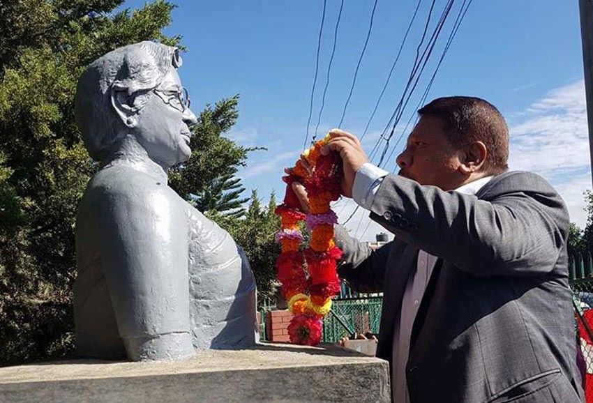 माल्यार्पणपछि सञ्चारकर्मीसँग कुरा गर्दै नेपाली काँग्रेसका नेता प्रकाशमान सिंहले नेपाली महिलाको हक, अधिकारका लागि आवाज उठाउने पहिलो महिला मंगलादेवी भएको बताए ।