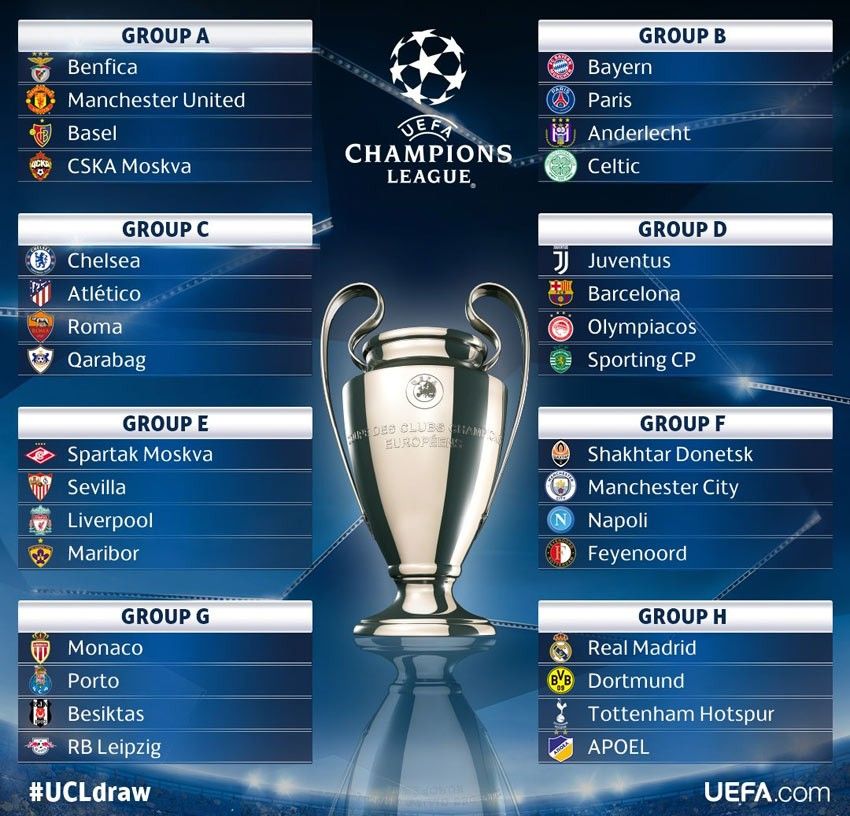 अन्तिम छनोटमा पुगेका ३२ क्लबलाई ८ समूहमा विभाजन गरिएको छ । समूह ‘ए’मा पोर्चुगलको बेनेफिका, इंग्ल्यान्डको म्यानचेस्टर युनाइटेड, स्वीट्जरल्यान्डको एफसी बाजल र रुसको सीएसकेए मस्को रहेका छन् ।