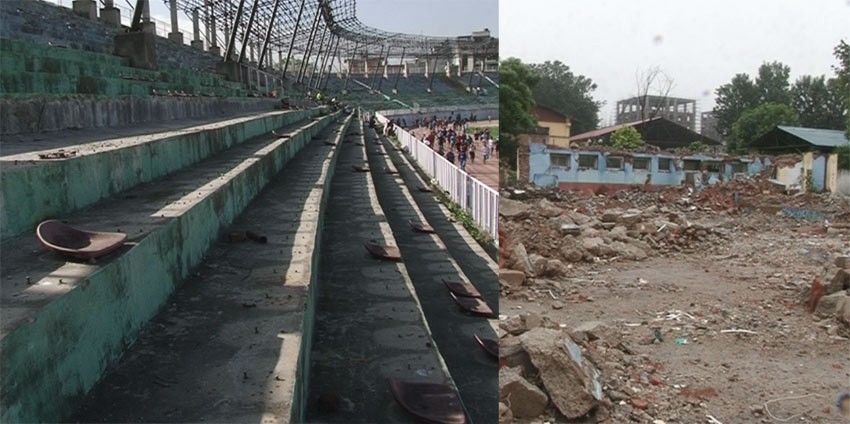 महाभूकम्पले संरचना भत्केर कुरुप बनेको यो रंगशाला अझै पुनःनिर्माणको प्रतीक्षामा छ । एक रिपोर्ट (विस्तृत भिडियोमा हेर्नुहोस्) ।