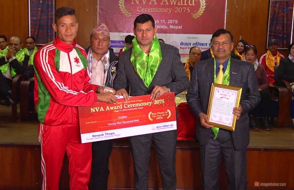 शुक्रबार नेपाल भलिबल संघले काठमाडौंमा आयोजना गरेको एनभीए अवार्ड कार्यक्रममा सरस्वती महिलातर्फ र धर्म पुरुषतर्फ उत्कृष्ट खेलाडी चुनिएका हुन् ।