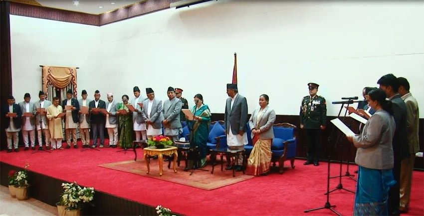 नवनियुक्त मन्त्रीहरुलाई बुधबारै राष्ट्रपति विद्यादेवी भण्डारीले राष्ट्रपति भवन शीतल निवासमा आयोजित समारोहमा पद तथा गोपनीयताको शपथग्रहण गराइन् ।