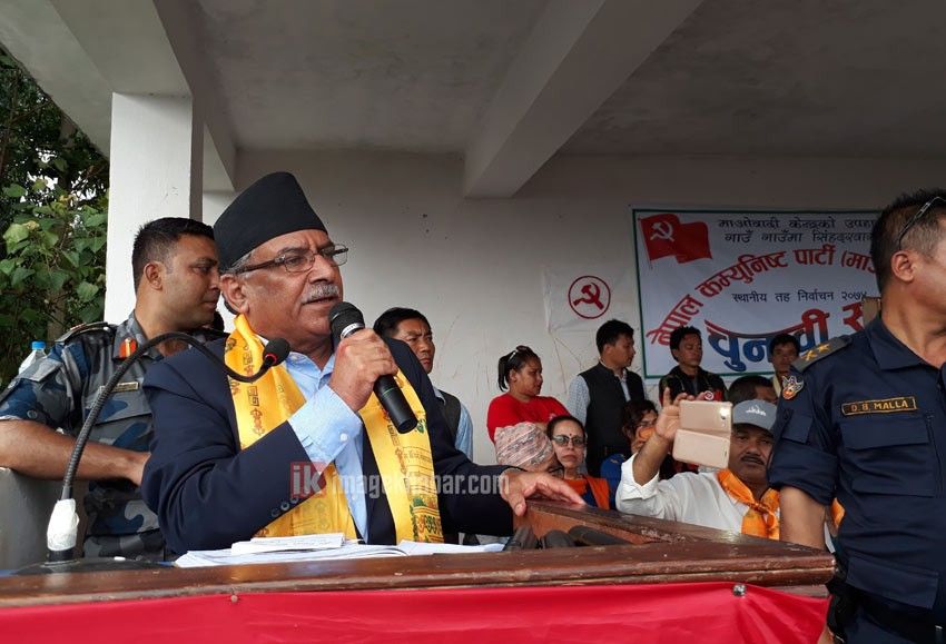 माओवादी केन्द्रले आईतबार खोटाङ सदरमुकाम दिक्तेलमा आयोजना गरेको चुनावीसभालाई सम्बोधन गर्दै अध्यक्ष दाहालले जनयुद्धकै क्रममा अभ्यासमा ल्याइएको जनसरकारले स्थानीय तहको मान्यता प्राप्त गरेका कारण माओवादी केन्द्रको जित भएको दाबी गरे । उनले यो देशमा राजा, महाराजाहरु र केही पुराना संसदीय पार्टीका नेताहरुले राम्रो काम गर्न खोज्नेलाई दमन गर्न खोज्ने र भ्रष्टहरुलाई पुरस्कृत गर्ने परम्परा नेपालमा चल्दै आएको बताए ।