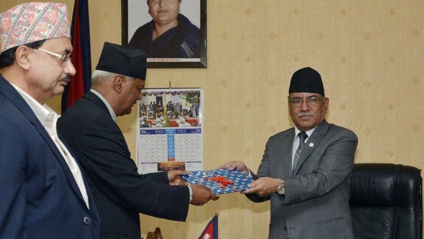 Academy Chancellor Ganga Prasad Upreti was at the Office of Prime Minister and Council of Ministers today to present the report to Prime Minister Pushpa Kamal Dahal ‘Prachanda’.