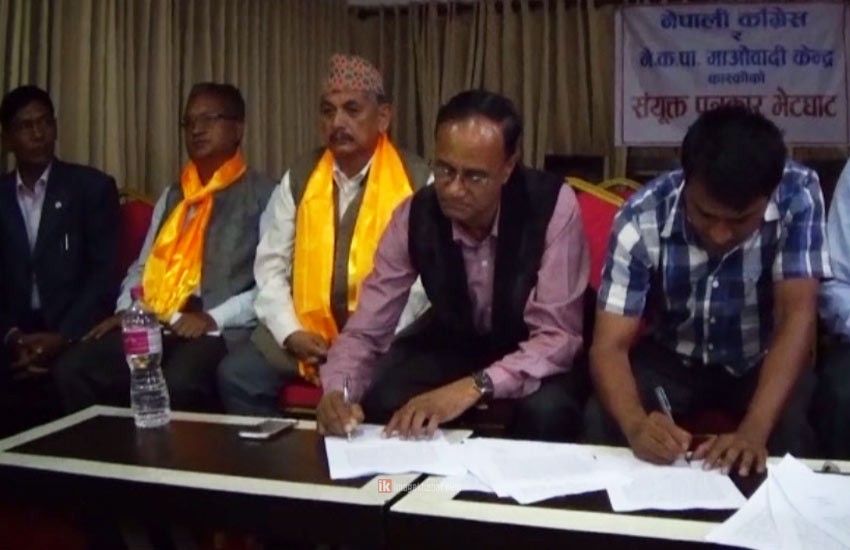 कांग्रेसको तर्फबाट कास्की कांग्रेसका सभापति कृष्ण केसी र माओवादी केन्द्रका तर्फबाट जिल्ला अध्यक्ष दीपक कोइरालाले मंगलबार संयुक्त प्रतिबद्धतापत्रमा हस्ताक्षर गरेका हुन् ।