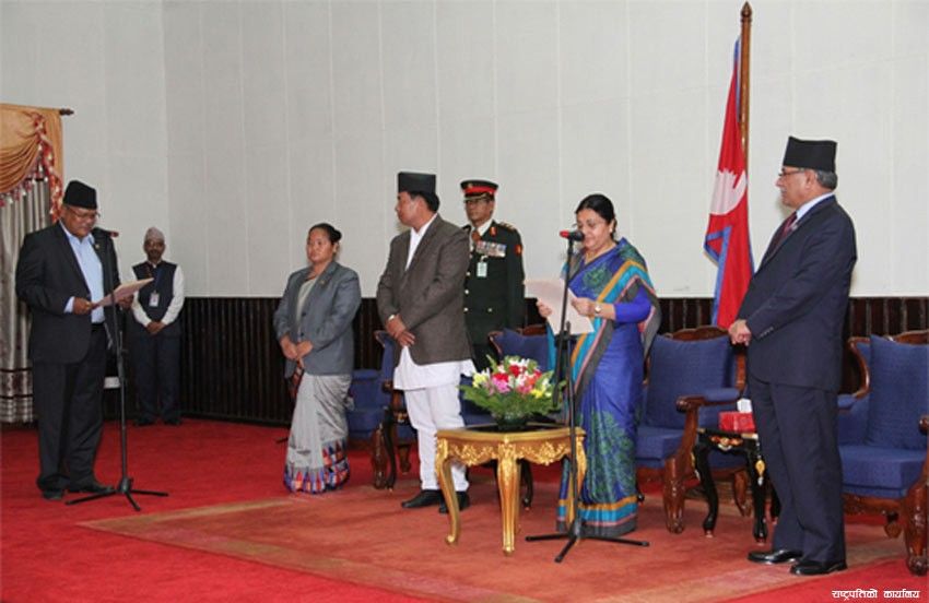 राष्ट्रपति कार्यालय शीतल निवासमा सोमबार साँझ आयोजित समारोहमा प्रधानमन्त्री पुष्पकमल दाहालको उपस्थितिमा उनलाई शपथ गराइएको हो ।