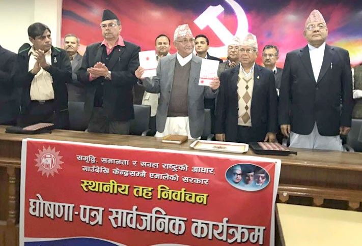 The manifesto was made public amid the presence of party Chairman KP Sharma Oli and senior leaders at a programme organized in the party central office today.