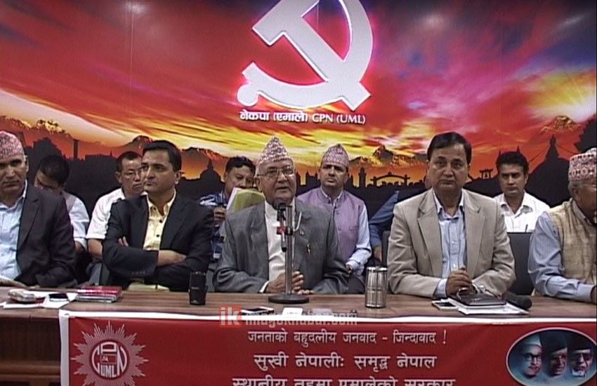 स्थानीय तहको चुनावलाई लक्षित गरी नेकपा एमाले केन्द्रीय प्रचार विभागले बिहीबार राजधानीमा गरेको राष्ट्रिय प्रचार भेलामा अध्यक्ष ओलीले सरकार नै राष्ट्रलाई विखण्डनतिर लैजाने षड्यन्त्रमा लागिरहेको आरोप लगाए ।