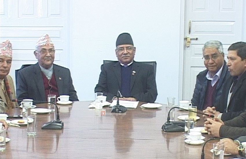 प्रधानमन्त्री पुष्पकमल दाहालले आज बालुवाटारमा डाकेको नेपाली कांग्रेस, नेकपा माओवादी केन्द्र र मधेसी मोर्चाको बैठकमा त्यस्तो सहमति जुटेको दाबी नेताहरुले गरेका हुन् ।