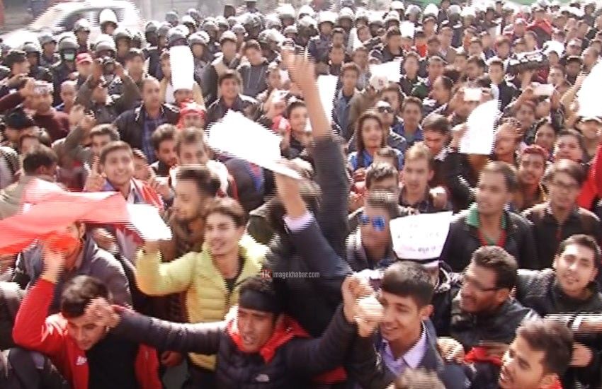 Kathmandu, Dec 5: Students affiliated to the United Youth and Students Front held demonstration in front of the Indian Embassy at Lainchaur in the Capital today.