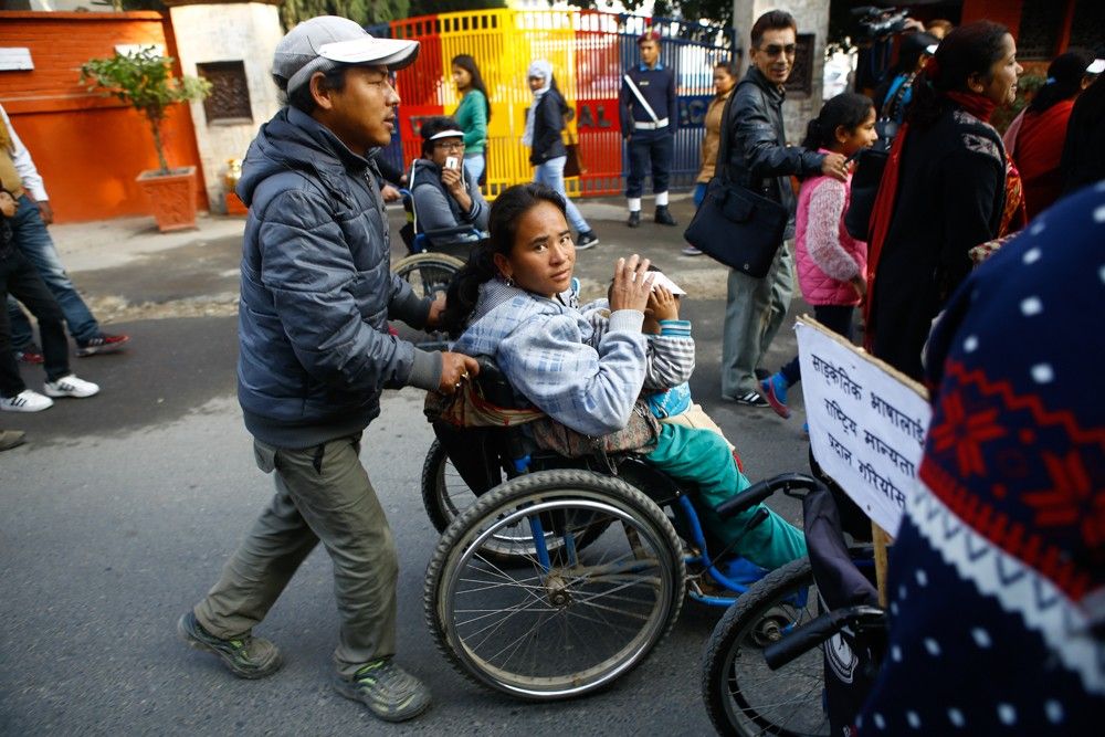 विश्व अपांग दिवसको अवसरमा शनिबार राजधानीमा निकालेको प्रभात फेरीमा सहभागीहरु । फोटोः सुनिल /ईमेनखबरर
