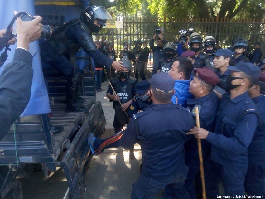 The police intercepted the demonstration at the Shanti Batika, which was set to head towards the Indian Embassy at Lainchaur to submit a memorandum, after which the programme to submit a memorandum was cancelled, Lohani added.