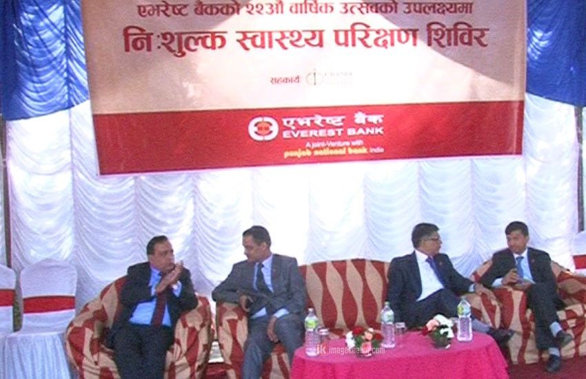 एभरेष्ट बैंकले सोमबार आफ्नो २२औं वार्षिकोत्सवका अवसरमा राजधानीमा निःशुल्क स्वास्थ्य परीक्षण कार्यक्रम सम्पन्न गरेको छ ।