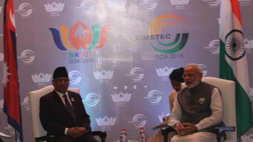 काठमाडौं, कार्तिक १ । ब्रिक्स सम्मेलनमा भाग लिन भारतको गोवा पुगेका प्रधानमन्त्री पुष्पकमल दाहाल र भारतीय प्रधानमन्त्री नरेन्द्रमोदीबीच भेटवार्ता भएको छ ।
