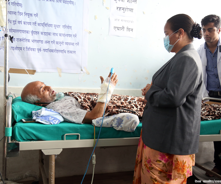She inquired into the deteriorating health condition of Dr KC. The Speaker met with Dr KC after receiving information of his weakening health, and urged the doctor to take care of his health condition while giving assurance of efforts to get his demands heard. The doctor has been on strike for the last 11 days.