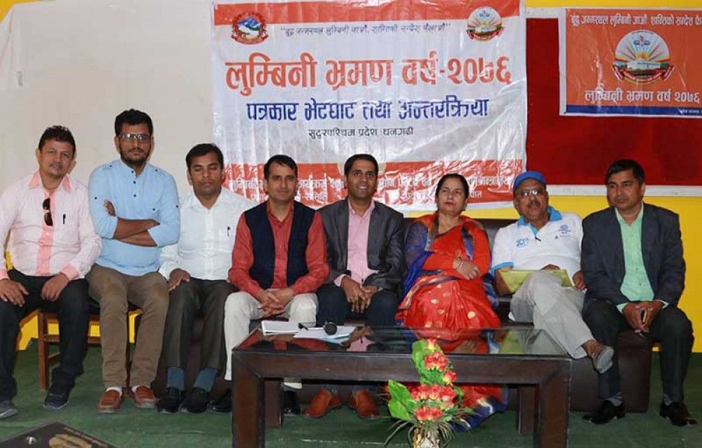 लुम्बिनी भ्रमण वर्ष–२०७६ प्रचारप्रसार उपसमितिले आज धनगढीमा गरेको पत्रकार सम्मेलनमा बुद्धजन्मस्थल लुम्बिनी भ्रमणका लागि निम्तो दिइएको हो । सुदूरपश्चिम प्रदेशका उद्योग, पर्यटन, वन तथा वातावरणमन्त्री माया भट्टको उपस्थितिमा भएको पत्रकार सम्मेलनमा प्रदेश नं ५ सरकारको तर्फबाट भ्रमणको निम्तो लिएर आएको प्रचारप्रसार उपसमितिका सचिवालय सदस्य प्रदीप आचार्यले प्रदेशवासीमा निमन्त्रणा सन्देश पु¥याउन अनुरोध गरेका हुन् ।
