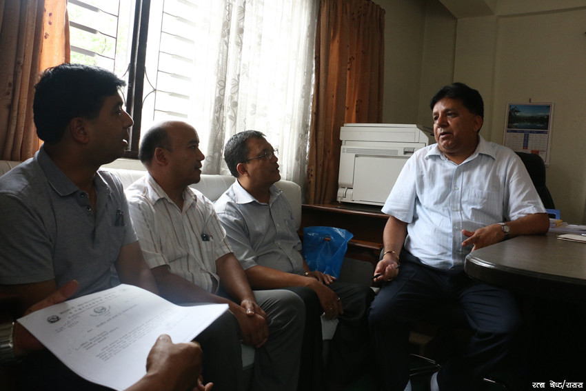 एकीकृत विकास पुनःनिर्माण अभियानका संयोजक मचाराजा महर्जनले प्राधिकरणका प्रमुख तिवारीलाई स्थानीयबासीको निवेदन र उनीहरुका जग्गाधनी पुर्जाका प्रतिलिपि बुझाएका हुन् ।
