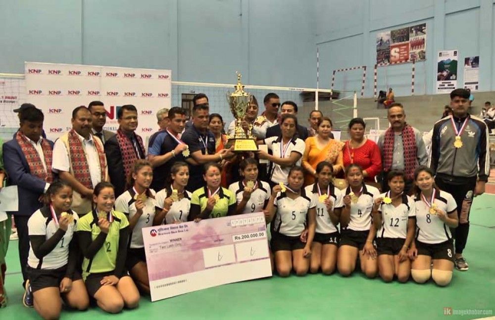 काठमाडौं, वैशाख १७ । पाँचौं केएनपी महिला राष्ट्रिय भलिबल प्रतियोगिताको उपाधि सशस्त्र प्रहरीको एपीएफ क्लबले जितेको छ ।