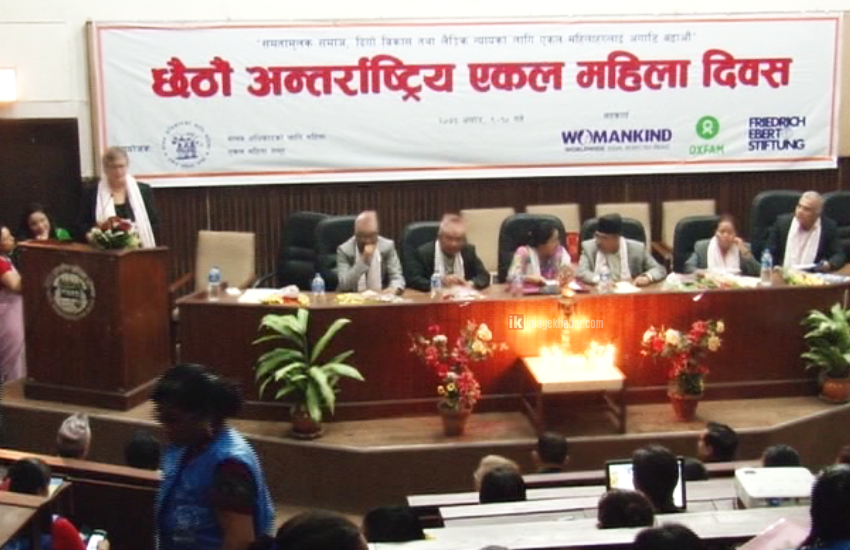 मानवअधिकारका लागि महिला र एकल महिला समूहको सयुंक्त आयोजनामा राजधानीमा भएको एक कार्यक्रममा एकल महिलालाई हिंसारहित र सम्मानित जीवन जीउने वातावरण बनाउनुपर्नेमा जोड दिइएको थियो ।