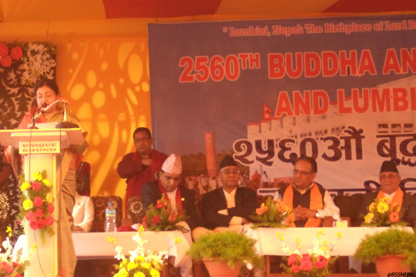 Addressing a special function organized to mark the 2560th Buddha Jayanti here today, President Bhandari said the teachings of the apostle of world peace Siddhartha Gautam was still relevant in today’s world and urged all to follow Buddha’s ideals by mind, words and deed.