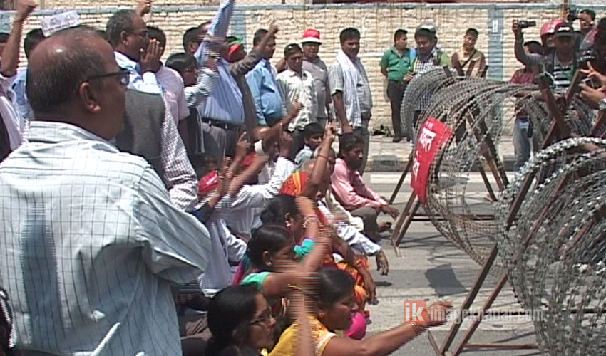 सुरक्षाकर्मीले लगाएको तारघेरा तोड्न खोज्दा सामान्य लाठीचार्ज भएको छ । प्रहरी र आन्दोलनकारी बीच एकछिन घम्साघम्सी समेत भयो ।