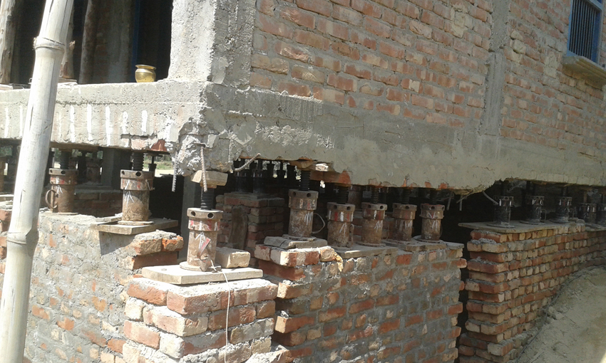 पाँच/छ जनाको सङ्ख्यामा आएका ती प्राविधिकले त्यही ज्याक, टेको र मुढाको सहयोगमा भासिएको पक्की घरलाई जरैदेखि उठाउन सफल भएका छन् ।