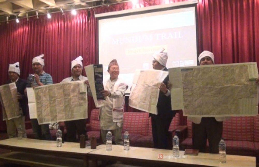 बिहीबार काठमाडौंमा आयोजित एक कार्यक्रममा भोजपुरका सांसद सुदन किराँतीले मुन्धुम ट्रेलको नक्सा विमोचन गरे ।