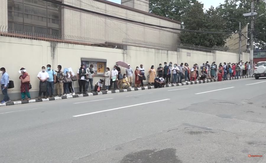 विदामा नेपाल आएका तर कोरोनाका कारण यतै रोकिएका नागरिकहरु पुनः जापान जानका लागि ‘नो अब्जेक्सन’ लेटर लिन लामो लाइन लागेका हुन् ।