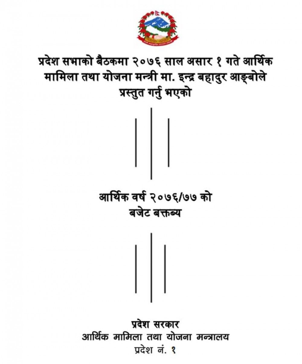 विराटनगर, असार १ । प्रदेश नम्बर–१ का आर्थिक मामिला तथा योजनामन्त्री इन्द्रबहादुर आङवोले आगामी आर्थिक वर्ष २०७६/७७ का लागि आइतबार प्रदेशसभामा रु ४२ अर्ब २० करोड चार लाख १२ हजार बजेट विनियोजन गरेको सदनलाई जानकारी दिएका छन् ।