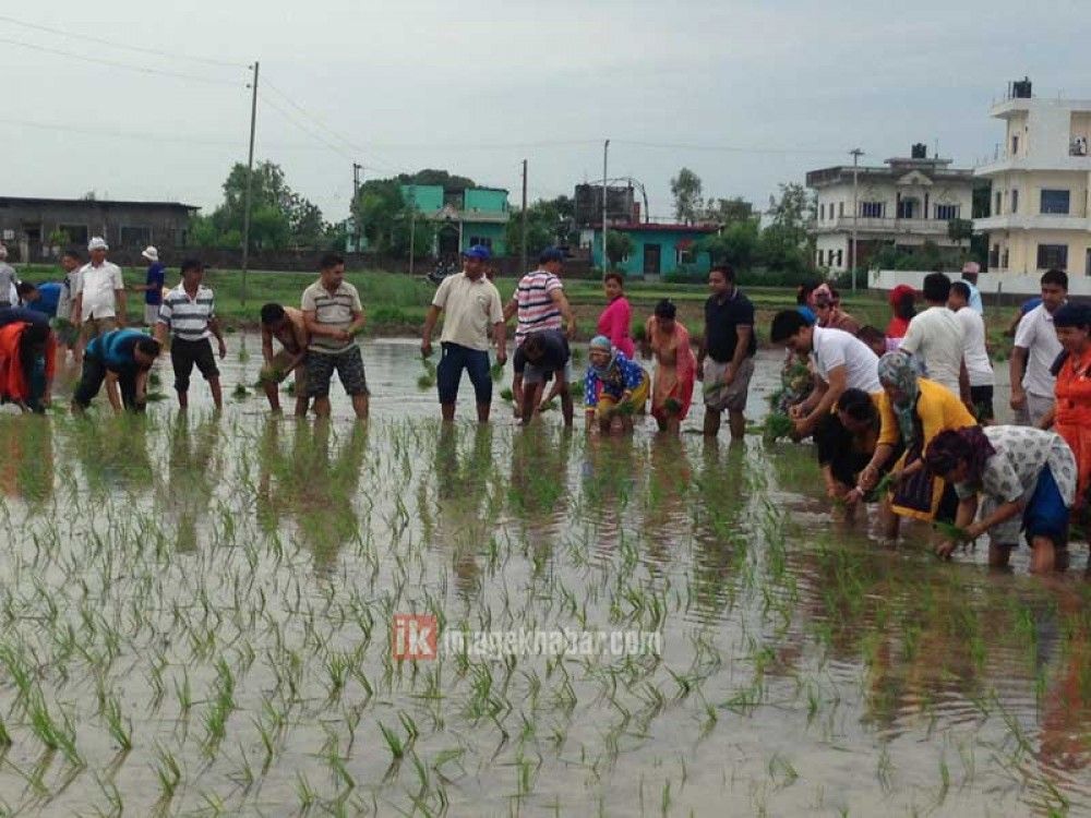रोपाइँमा नगरप्रमुख बासुदेव घिमिरे, उपप्रमुख जागेश्वरी चौधरी, प्रमुख प्रशासकीय अधिकृत कृष्णप्रसाद सापकोटा, वडाध्यक्ष खेमराज गुरुङ, कार्यपालिका तथा नगरसभा सदस्य, कर्मचारी, विभिन्न कृषक समूह, आमा समूह, टोल विकास संस्थालगायत किसानहरुको सहभागिता थियो । सहभागीहरुले पञ्चेबाजाको तालमा झण्डै दुई बिगाहा खेत रोपेका छन् ।