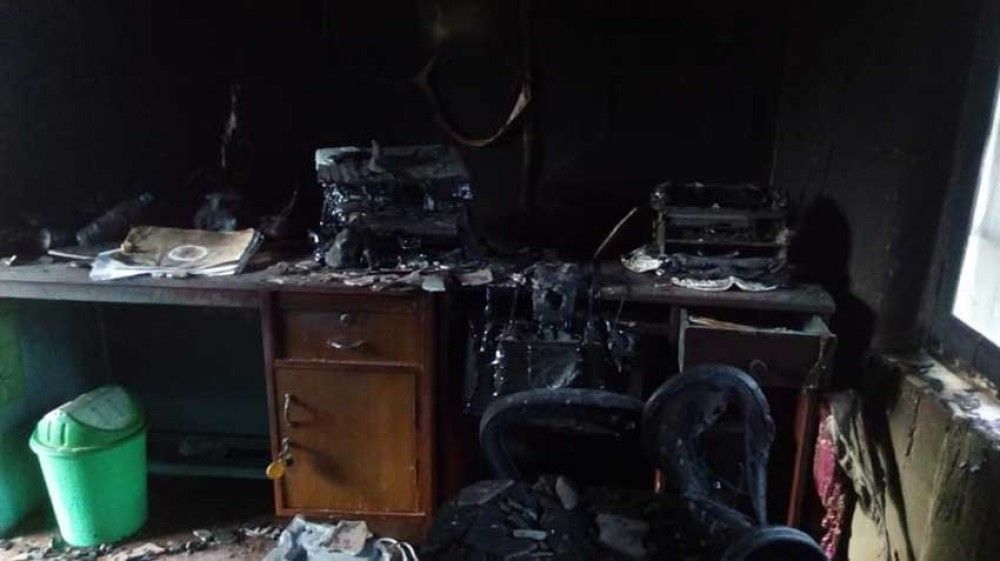 आगजनीबाट कार्यालयका कागजात, कम्प्युटर, प्रिन्टर, टेबुल, कुर्सीलगायतका सामग्री जलेका छन् ।