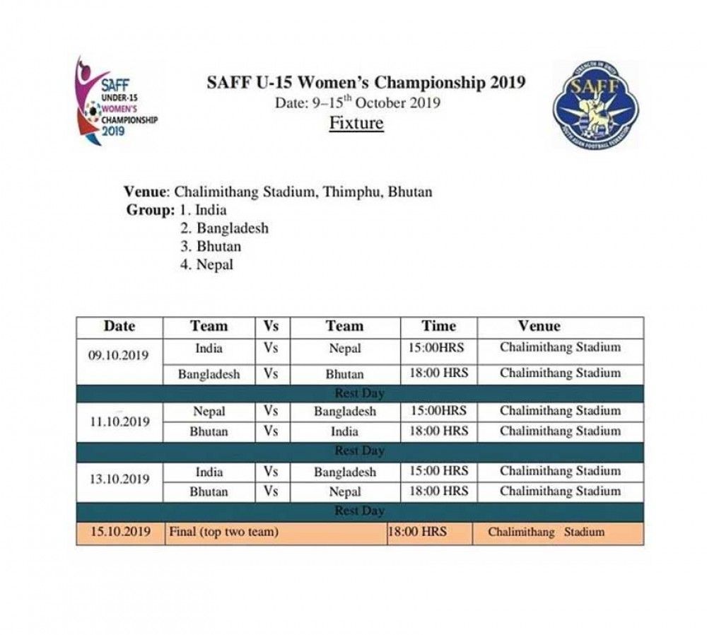 त्यस्तै, नेपालले असोज २४ गते बंगलादेशसँग खेल्नेछ भने असोज २६ गते आयोजक भुटानसँग खेल्नेछ ।