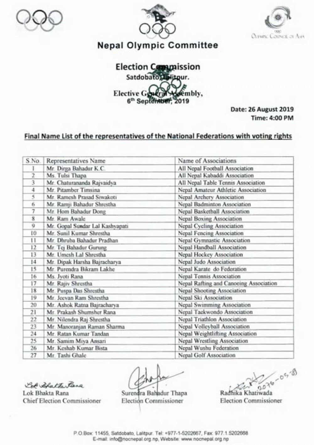 २७ खेलकुद संघबाट मताधिकार प्रतिनिधिको नामावली सार्वजनिक भएको हो ।