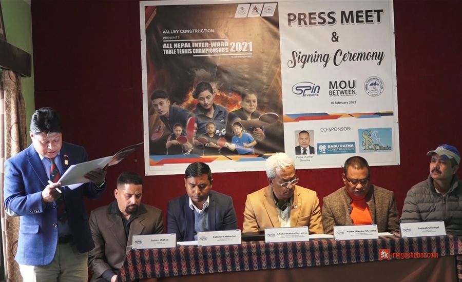स्पिन इभेन्ट्स प्रालिले मंगलबार पत्रकार सम्मेलन गरेर देशव्यापी अन्तरवडा टेबल टेनिस प्रतियोगिता चैत २ देखि ७ गतेसम्म सञ्चालन गर्ने जनाएको हो ।