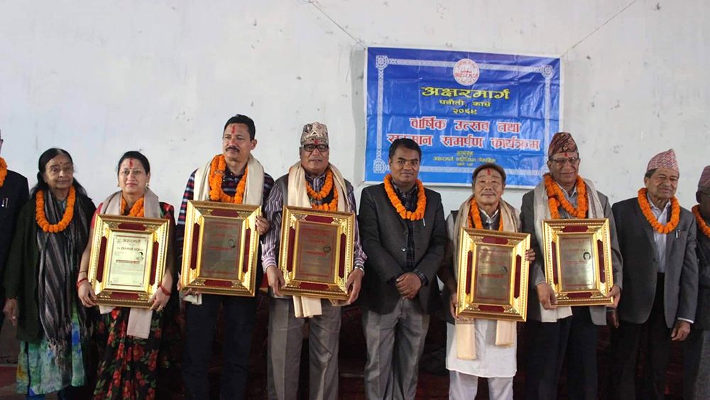 काभ्रे । आठौंँ वार्षिकोत्सवको अवसर पारेर अक्षरमार्गले नेपाली भाषा–साहित्यको क्षेत्रमा समर्पित पाँचजना साहित्यकारलाइ सम्मान गरेको छ ।