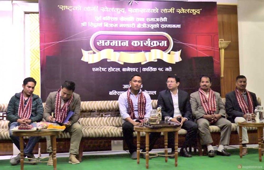 बेलायतमा बसेर नेपाली खेलाडीहरुलाई निरन्तर सहयोग गर्दै आएका पूर्वराष्ट्रिय बक्सिङ खेलाडी सिद्धान्तविक्रम भण्डारी क्षेत्रीलाई सम्मान गर्न आयोजित कार्यक्रममा अक्षयकोष घोषणा गरिएको हो ।