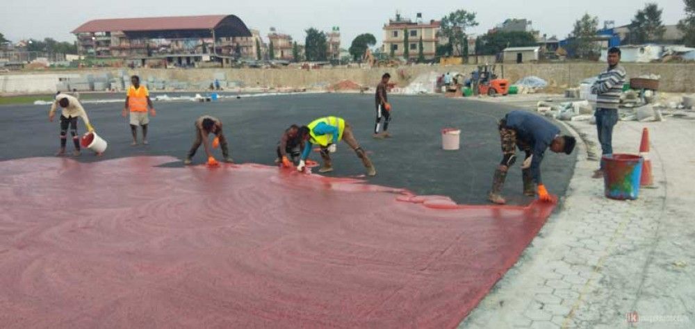 फुटबल मैदान निर्माण कम्पनी भारतीय ग्रेड स्पोर्ट्स प्रालि र एमए कन्स्ट्रक्सन प्रालिले संयुक्तरुपमा गरिरहेका छन् ।