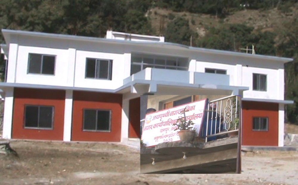 बझाङको जयपृथ्वी नगरपालिकाले कार्यालय स्थापनाको एक वर्ष अघि भवन निर्माण गरिए पनि अहिलेसम्म भाडाकै भवनमा कार्यालय राखिएको छ ।
