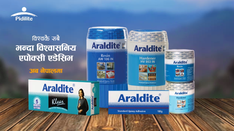 एड्हेसिभ, निर्माण केमिकल्स्, सिलेन्ट आदि निर्माणमा अग्रणी दाबी गरिएको पिडिलाइट इन्डष्ट्रिजले नेपाली बजारमा एरल्डाइटको इपोक्सी एड्हेसिभको रेन्जको बिक्री सुरुवात गरेको जनाएको हो ।