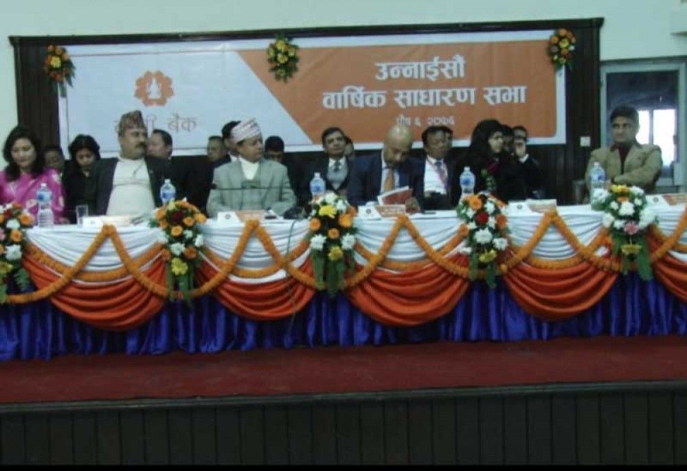 बैंकको आईतबार राजधानीमा सम्पन्न १९ औं वार्षिक साधारणसभाले १० प्रतिशत बोनस शेयर र ५ प्रतिशत नगद लाभांसको प्रस्ताव पारित गरेको हो ।