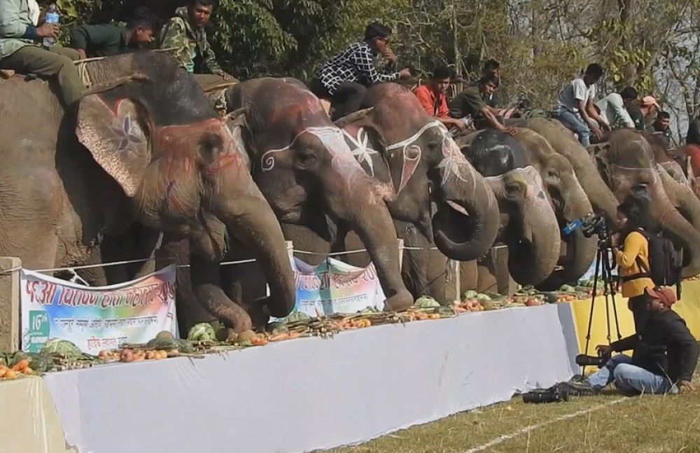 क्षेत्रिय होटल संघ चितवन नेपालले सौराहामा आयोजनाको गरेको हात्ती महोत्सव अन्तर्गत आज करिब एक सय वटा हात्तीहरुलाई वनभोज खुवाइएको हो ।