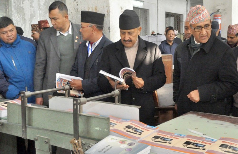 सरकारले माध्यमिक तहसम्मको पाठ्यपुस्तक निःशुल्क उपलब्ध गराउने दायित्वअन्तर्गत त्यसको रकम सम्बन्धित स्थानीय तहमा निकासा गर्छ भने पाठ्यपुस्तक उत्पादन र वितरणका लागि जनक शिक्षा सामग्री केन्द्र तथा निजी क्षेत्रका मुद्रणलाई जिम्मेवारी दिइएको छ । सरकारले आधारभूत तहको पाठ्यपुस्तकको गुणस्तर वृद्धि गरी रङ्गीन पाठ्यपुस्तक छपाइ गर्न दिएको निर्देशनबमोजिम ‘उड फ्रि’ कागजमा रङ्गीन पाठ्यपुस्तक छपाइ भइरहेको छ ।