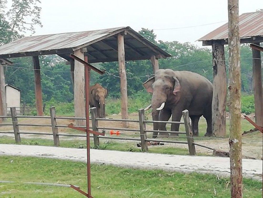 The tusker of Chitwan National Park was taken under control and its pointed teeth removed before installing satellite radio collar on its body.