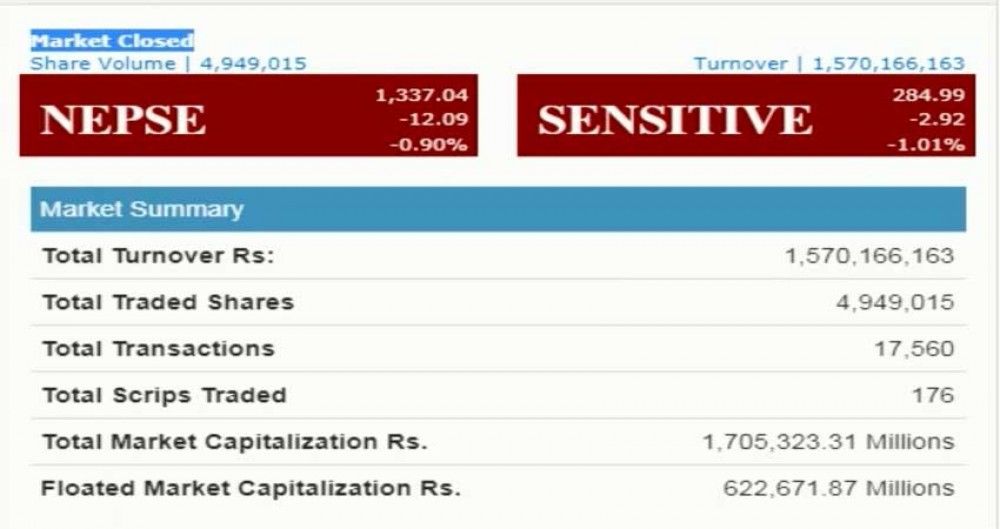उतार–चढावबीच बजार परिसूचक नेप्से १२ अंकले ओरालो लागेर १३ सय ३७ मा आइ थामियो ।
