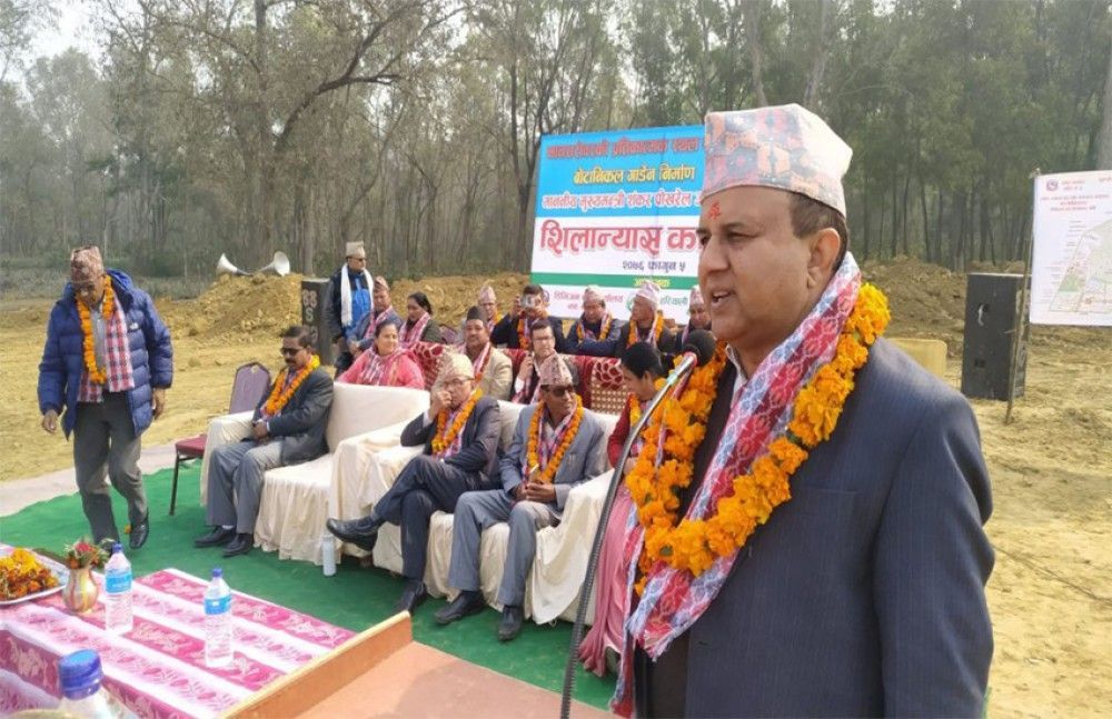 बाँकेको बैजनाथ गाउँपालिका–६, लालपुरस्थित न्यू हरियाली सामुदायिक वन उपभोक्ता समूहको जङ्गल हाताभित्र निर्माण गरिने मानसरोवरको प्रतीकात्मकस्थल सहितको वनस्पति उद्यानको सोमबार शिलान्यास गर्दै उनले भने ।