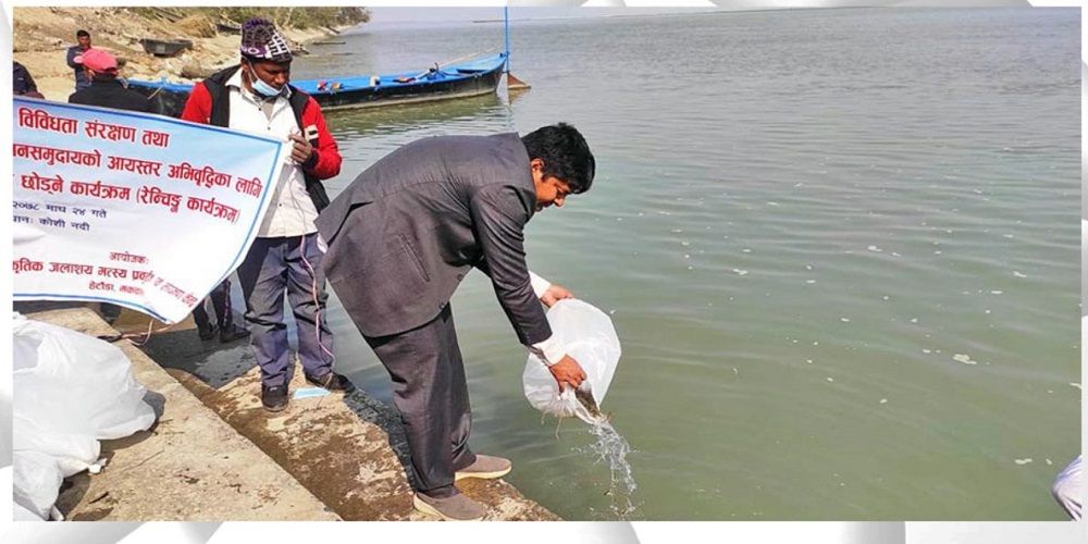 प्राकृतिक जलाशय मत्स्य प्रर्वद्धन तथा संरक्षण केन्द्र मकवानपुरका कार्यालय प्रमुख सरोज कुमार यादवले जलीय जैविक विविधता संरक्षण तथा प्राकृतिक जलाशयमा आश्रित समुदायको आयस्तर अभिवृद्धिका लागि स्थानीय जातका माछा नदीमा छाडिएको जानकारी दिनुभयो ।