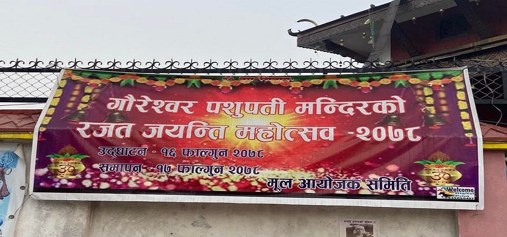 यहि फागुन १६ र १७ गते दुई दिन गौरेश्वर पशुपति मन्दिर रजत महोत्सव–२०७८ आयोजना गरिने भएको हो।देवघाटमा आएका पर्यटकलाई समेत आकर्षित गराउन महोत्सवले थप सहयोग पुग्ने मन्दिरका अध्यक्ष सुर्यकुमार प्रकाण्ड पियाकाले बताउनुभयो ।